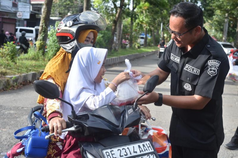 Kegiatan yang dipusatkan di sepanjang Jalan Sultan Agung, Way Halim, Bandar Lampung ini menyasar para pengendara roda dua, pengemudi ojek online (ojol) yang melintas di kawasan tersebut.