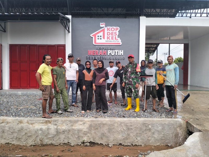 Babinsa dan Warga Gotong Royong Bersihkan Gedung KDKMP di Gedung Agung
